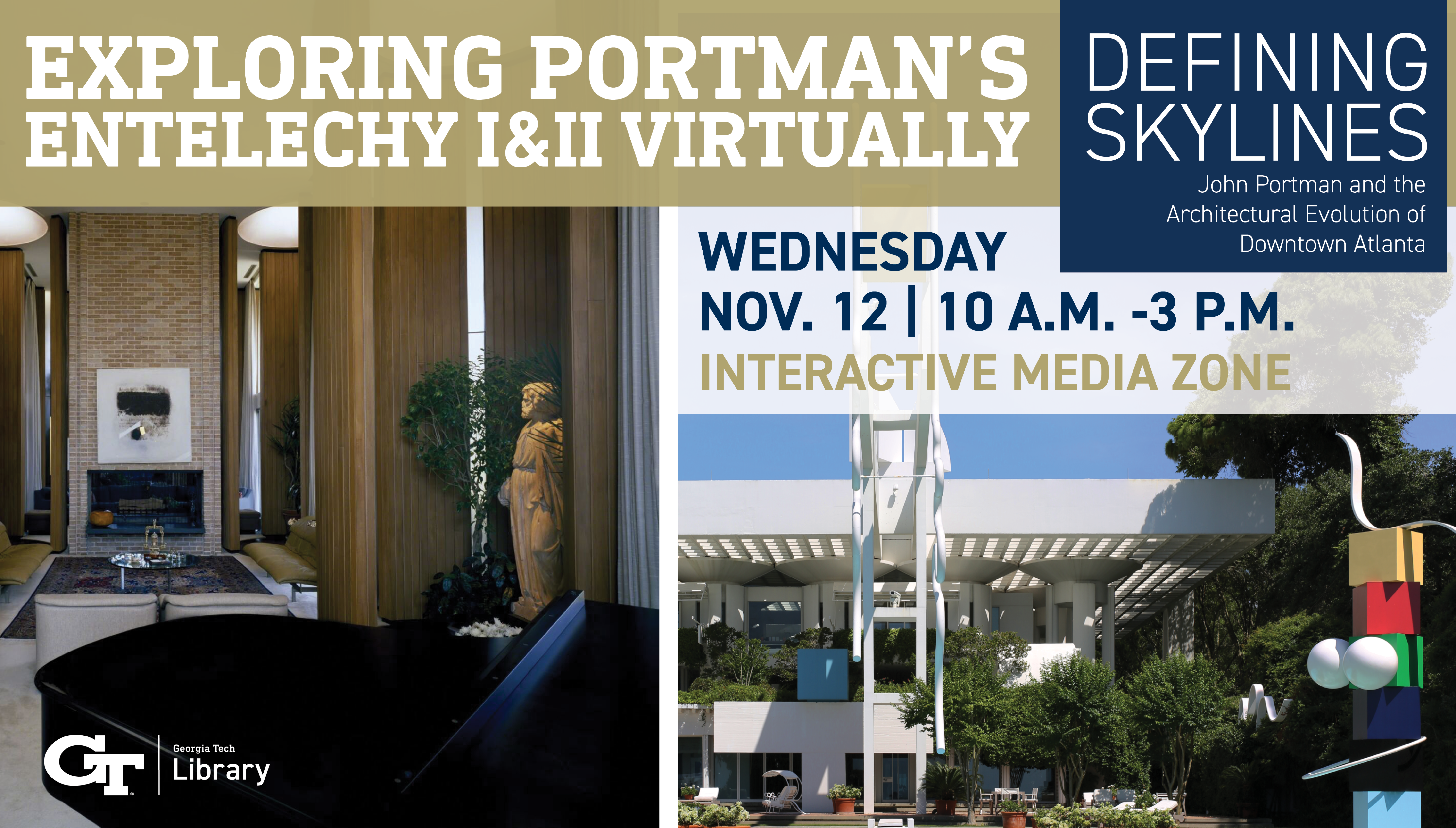 Join the Georgia Tech Library in the Interactive Media Zone, located on the Grove Level of Price Gilbert, Wednesday, Nov. 12 from 10 a.m. to 3 p.m. for Exploring Portman's Entelechy I & II virtually.